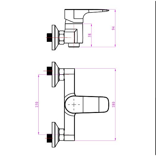 Miscelatore Vasca Monocomnado Serie Italia completo di coppia di raccordi eccentrici per collegamento a parete, flessibile doccia cm 150, soffione doccia multifunzione e supporto a muro per soffione doccia