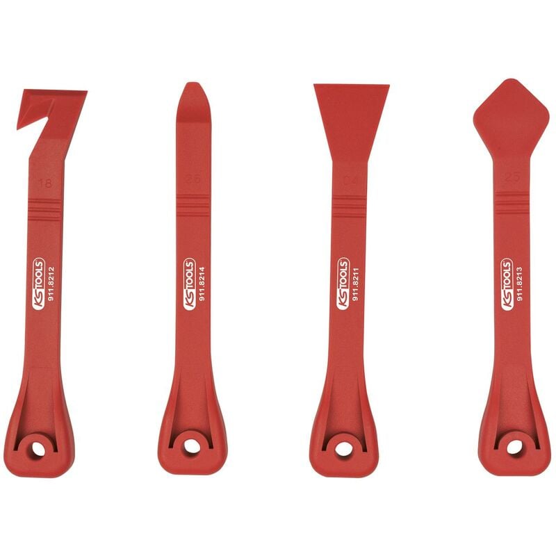 Ideale per smontare diverse parti del rivestimento Assortimento pratico di diversi tipi di cunei e racle Versione compatta e robusta Ideale per smontare parti di rivestimento, modanature, ecc. senza danneggiare la vernice Per lavori di precisione su parti di rivestimento molto delicate Materiale plastico speciale Pezzi in set 4 Peso del tessuto 120 Dimensioni dell'imballaggio 1 Materiale1 Spezial-Kunststoff