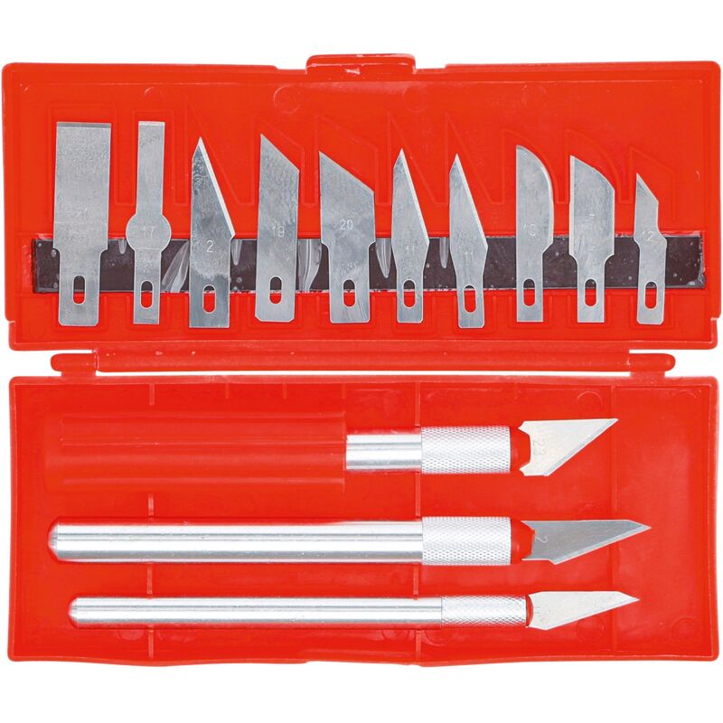 Utilizzo nella creazione di modelli e nel design Per tagliare in modo preciso vinile, cartone, carta, ecc. 3 portalame 13 lame con diversi profili a tagliente dritto, obliquo e rotondo in diverse misure In cassetta di plastica Imballaggio adatto per essere appeso alla parete Ja Peso del tessuto 0.162 Dimensioni dell'imballaggio 1 Peso lordo 162 g