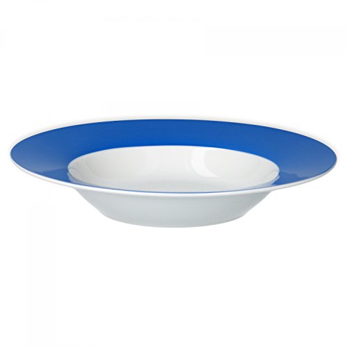 Elegante e semplice al contempo, in porcellana bianca con bordo di colore vivace.