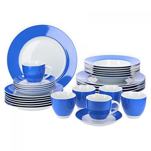 Van Well, serie Vario, set di piatti da 30 pezzi, per 6 persone. In porcellana. blau