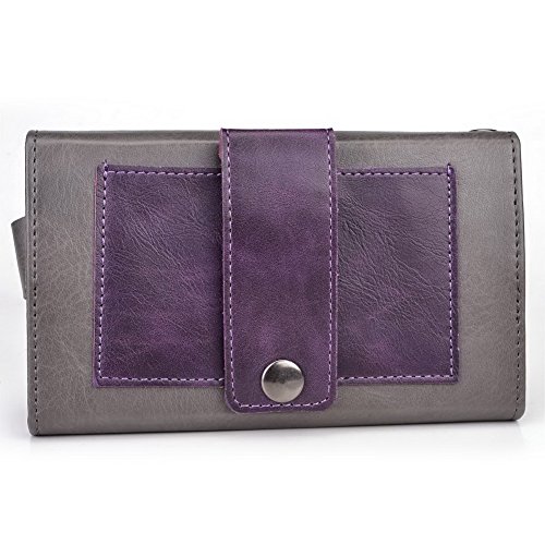 Kroo Link Series universale da donna in pelle Wristlet borsa a tracolla compatibile con molti da 4 a 12,7 cm custodia per Archos/BlackBerry/blu/Google/HTC telefono cellulare multicolore Gauntlet Gray and Dark Plum Purple