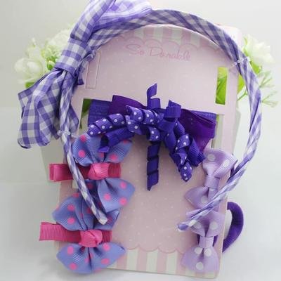 1 Serra testa molto Mignon accompagnato di sue 2 Elastici + 2 Barrette + 2 pinze fiocco Parma Viola per piccola ragazza molto principesca
