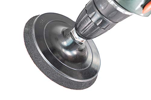 La piastra abrasiva o la piastra di lucidatura, che altrimenti vengono montate sulla smerigliatrice angolare, si adattano direttamente al trapano o all'avvitatore a batteria