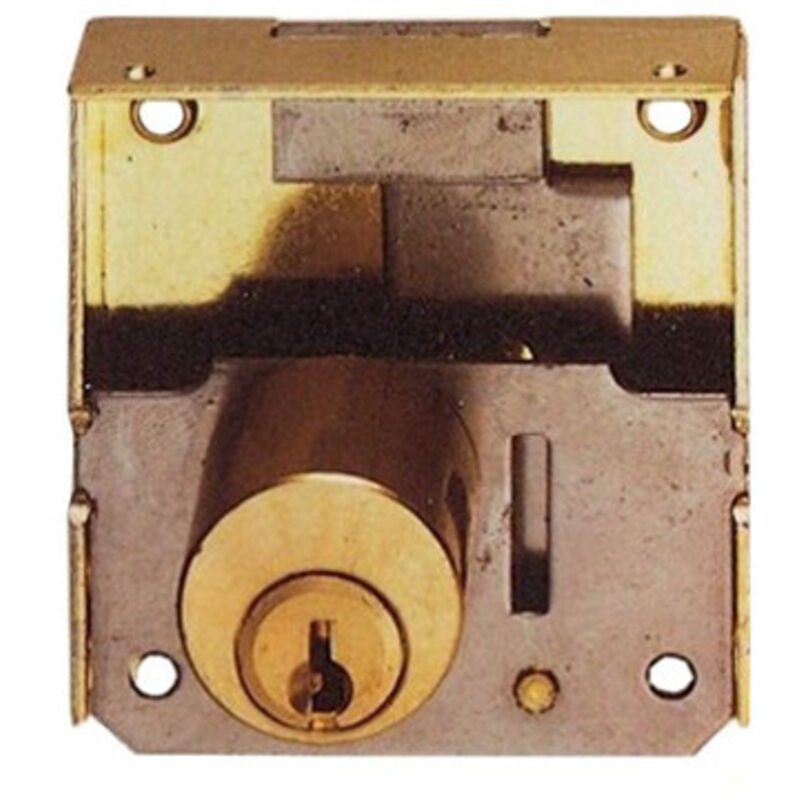 Serrature per mobili MR CAS 16C Modello da applicare a due mandate, con cilindro in ottone, con dorso in ferro ottonato Entrata 35 mm.