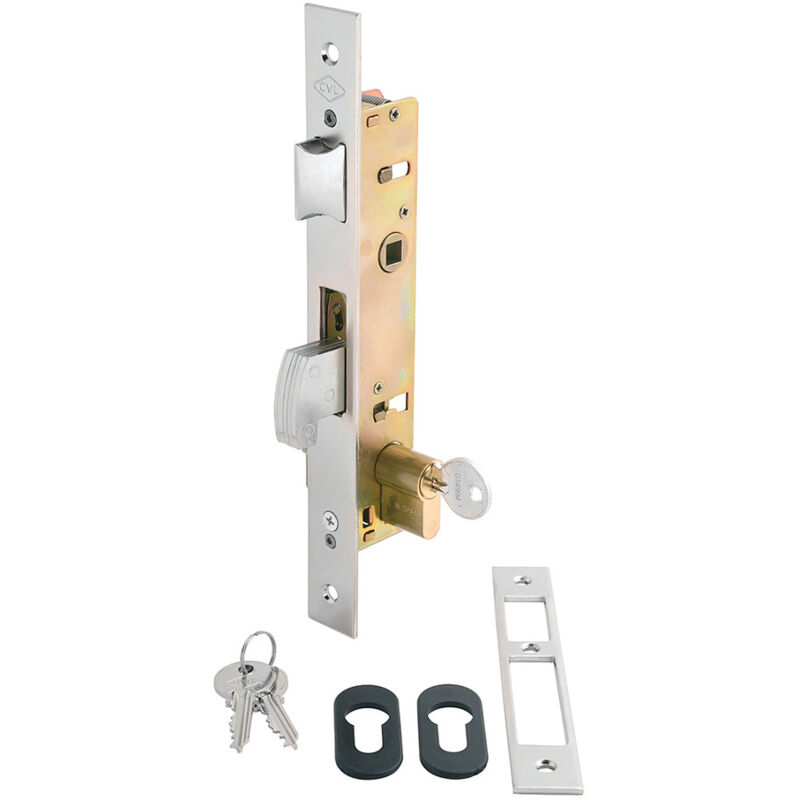 Serratura da carpenteria metallica Cvl 1990/20/5. - Cilindro a profilo europeo. - Con scrocco. - Leva a gancio.