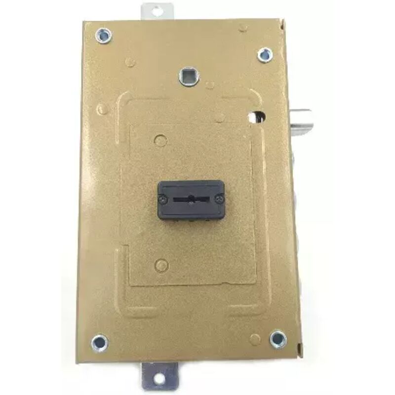 Serratura CR per porta blindata a doppia mappa triplice ambidestra con scrocco reversibile comandato dalla chiave e dal quadro maniglia. Dimensione scatola L.142 H.227 E.68. Interasse fissaggi 110x201. Versione con 4 catenacci piu' lo scrocco interasse mm.28 sporgenza mm.3,5.