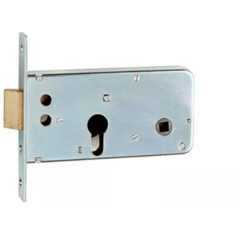 Serratura da infilare per fasce entrata 60 mm 720600 iseo. serratura con chiusura laterale a cilindro profilato europeo. scatola in acciaio zincato altezza 72 mm. frontale in acciaio zincato 22 mm altezza 130 mm. catenaccio a una mandata da 11 mm con scrocco incorporato. funzionamento: richiamo scrocco con chiave o quadro maniglia 8 mm. in dotazione alla serratura iseo 720600: vite di fissaggio cilindro.