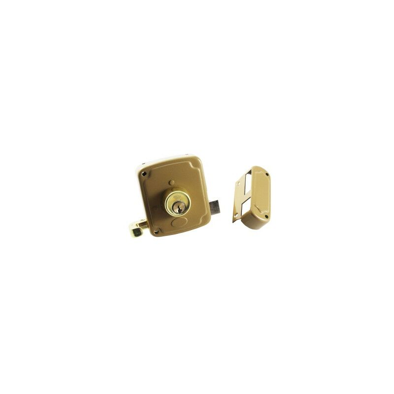 Serratura a rivestimento per porte madera con cilindro tondo.- con leva di bloccaggio, linguetta e maniglia.- lunghezza cilindro: 50 mm.- include 3 chiavi serreta.
