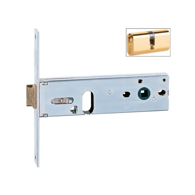Iseo serratura alluminio inf.fasce 2m+s art. 704 e.80 - f.16 Serratura da infilare per fasce. Scrocco, chiusura laterale, con cilindro, frontale zincato, 3 chiavi, zincata, scatole mm. 163/173/183x44. Articolo produttore: 704801/S C/CILIN
