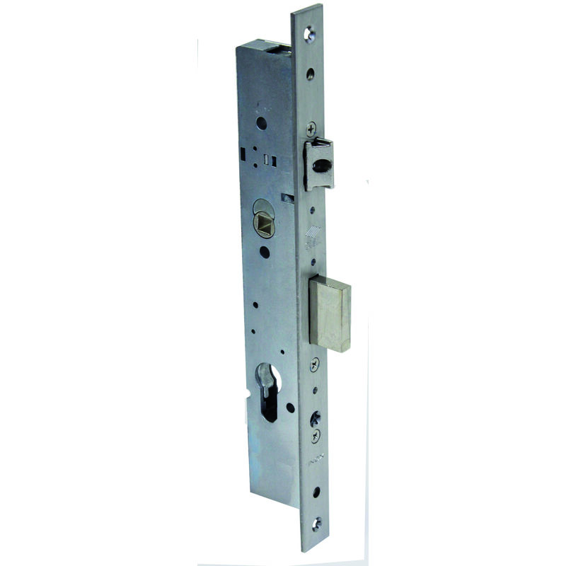 Cisa serratura alluminio inf. mont. ingranaggi c/s trip.2m art. 49225 e.35 ambidestra f.22 Serratura ambidestra da infilare ad ingranaggi per montanti, predisposta per cilindro europeo. 2 mandate, chiusura triplice, catenaccio e scrocco regolabile, frontale in acciaio inox, quadro maniglia, scatole mm. 40/45/50x247. Articolo produttore: 14922535000RC