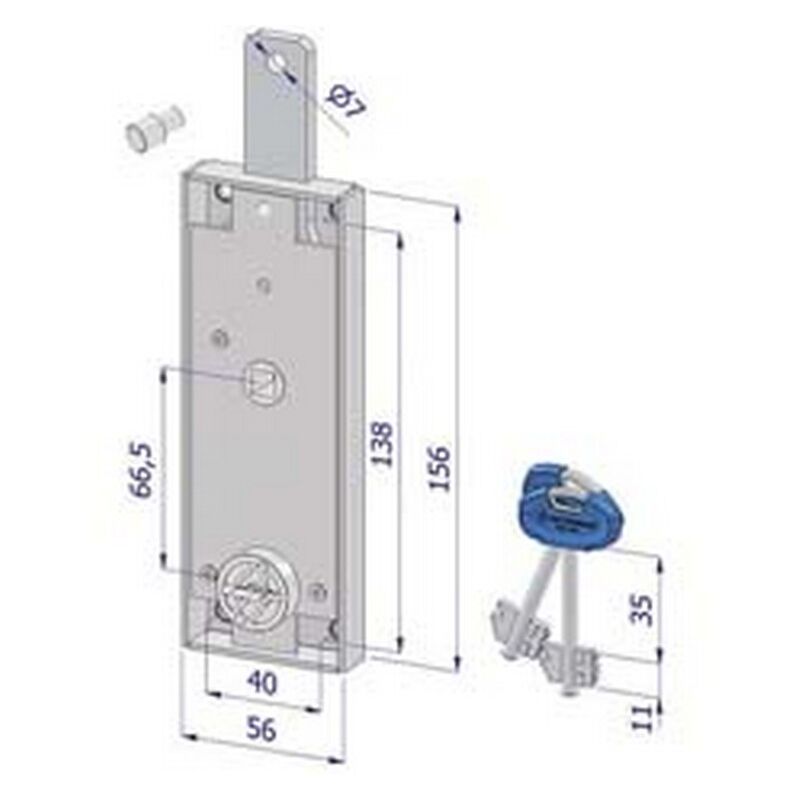 Scatola in acciaio zincato - serratura per serrande con chiave doppia mappa - 2 mandate - catenaccio movimentato da maniglia/pomolo