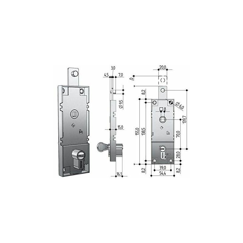 Prefer W5a1.082b Serratura Basculante senza Leva Cilindro Sagomato Punzonato