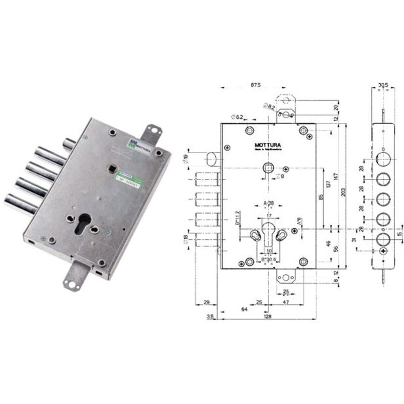 Mottura Serratura 89.4515MADQ per porte blindate, predisposizione per cilindro europeo. Movimento ad ingranaggi. Entrata chiave/maniglia mm 64. Chiavistelli tondi mm 18 int. mm 28, corsa mm 29. Scrocco reversibile. Doppio sistema anti-intrusione. Facile Sicura Affidabile Prodotto di ottima qualita