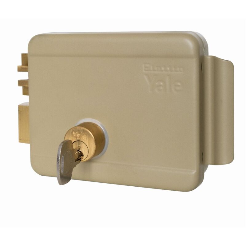 Con mandate per cancelli. Finitura acciaio verniciato, controbocchetta, coppia cilindri interno/esterno, tettuccio incluso, serratura doppio cilindro, cilindro esterno fisso, 3 chiavi in dotazione. Funzionamento scrocco azionato dell'esterno e dall'interno mediante chiave e a distanza mediante impulso elettrico a basso voltaggio, catenaccio meccanico azionato mediante chiave dall'interno/esterno