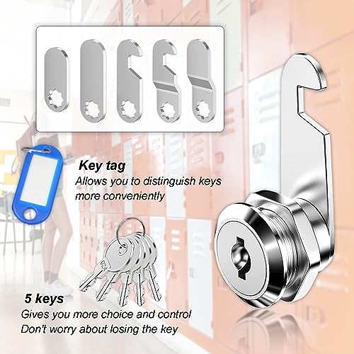 【Versatilità】 Il lucchetto a camma è realizzato in lega di zinco e cromatura. Il cilindro è lungo 16 mm e ha una piastra di bloccaggio per accogliere materiale fino a 12,5 mm di spessore. NOTA BENE: Ogni serratura viene fornita con 5 chiavi, tutte le serrature sono diverse e possono essere aperte solo con le 5 chiavi fornite.