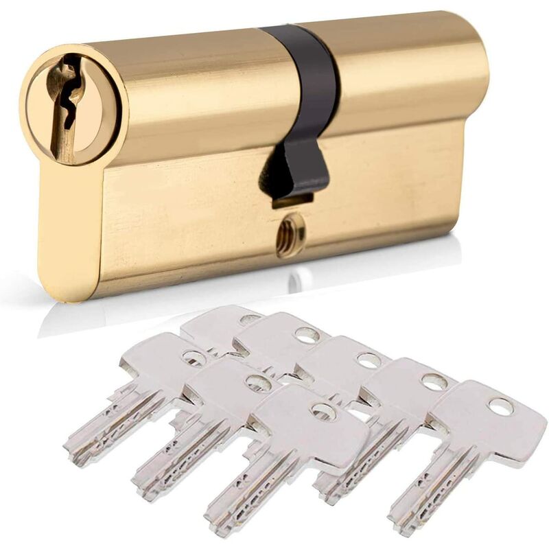 Informazioni su questo articoloAnti-collisione: il cilindro della serratura ha un'esclusiva protezione anticollisione e non utilizza un perno fisso. Ciò garantisce una rotazione molto fluida della chiave cilindrica impedendo l'ingresso di chiavi maschio e femmina.,Antitrapano: la serratura della porta da 80 mm ha quattro perni antitrapano in acciaio temprato su ciascun lato. Tutti i perni mobili sono in acciaio temprato nichelato Anti-scasso: la serratura a cilindro è progettata con un sistema anti-scasso, con almeno tre perni anti-scasso su ciascun lato, che rende estremamente difficile per i normali ladri forzare la serratura. Ampia gamma di applicazioni: adatto a molti tipi di porte, comprese porte in legno, porte in metallo, porte UPVC, serrature per porte patio, porte europee in alluminio o porte composite. Cilindro a 6 perni: finitura ottone, 40/40 mm (80 mm). 8 chiavi standard incluse