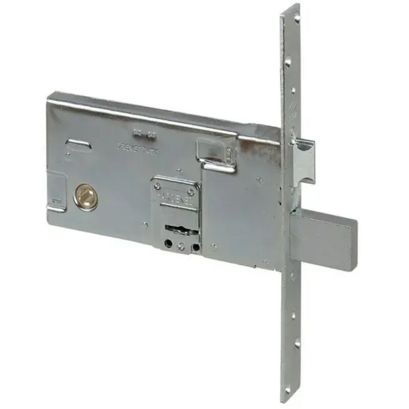 Serratura doppia mappa infilare alluminio|Catenaccio e scrocco - Ambidestra|Borchie - Viti fissaggio - 3 chiavi|Altezza scatola mm.82|Misura frontale mm.25x240 - Entrata mm.70