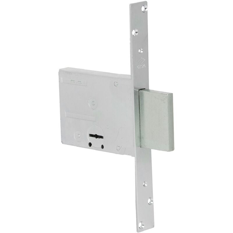 Scatola e frontale con rivestimento in zinco, catenaccio acciaio. Altezza scatola 82 mm, borchia in acciaio, 4 mandate, frontale 25 mm.. E 70. Prezzo inteso per: 1 PZ