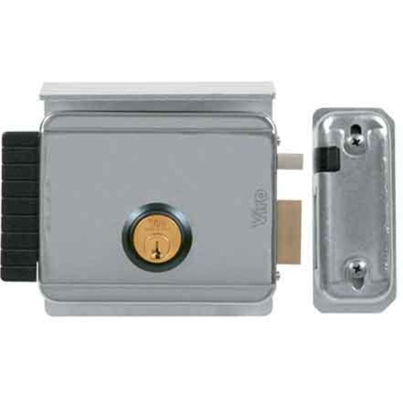 Cilindro interno ed esterno fisso. Scrocco autobloccato a serratura chiusa. Espulsore separato dallo scrocco per garantire il funzionamento della serratura anche in caso di movimenti verticali fra serratura e controbocchetta. Alimentazione 12V. Fornita di controbocchetta e tettoia parapioggia. Scatola mm.127,5x103,5. Serratura elettrica per cancelli serie 8992 viro e50÷80 sx VIRO Serrature per infissi, elettriche e alluminio