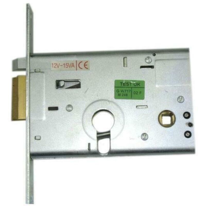 Per fasce di profilati metallici, con quadro maniglia, scrocco autobloccante, cilindro sagomato, frontale 16 mm., entrata 58 mm., fermo a giorno. Cilindro sagomato non in dotazione