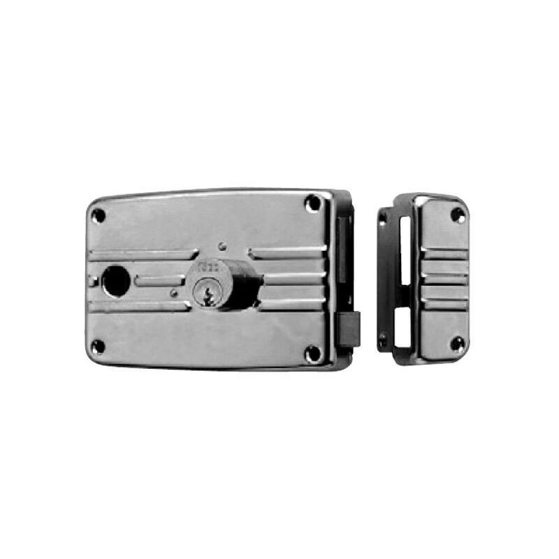 Serratura zincata applicare ferro Cilindro interno - Catenaccio e scrocco Entrata 60 3 mandate Quadro maniglia mm 8 3 chiavi 020259 cod.83573 Cilindro fisso mm 26x50 Scatola mm 140x93 Ricambio cilindro cod.83572
