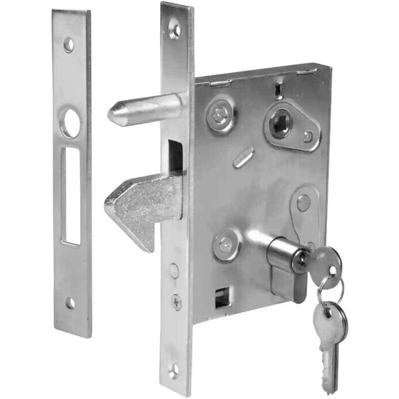 Art. 447in acciaio zincato. Con contropiastra e cilindro 54mm con 3 chiavi. Scatola mm 95x130. Entrata 60 mm: 1,0: PZ