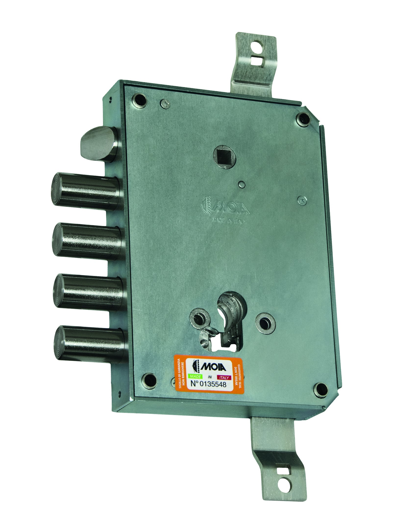 SERRATURABLINDATAA CILINDROApplicare triplicead ingranaggiReversibileSERIE RCEIl cilindro non necessitadel montaggio del protettoreper essere fissatoInterasse defender 38 - E - 60 - Mano - Ambidestra - Sporg. - 3,5 - N° Cat. - 4