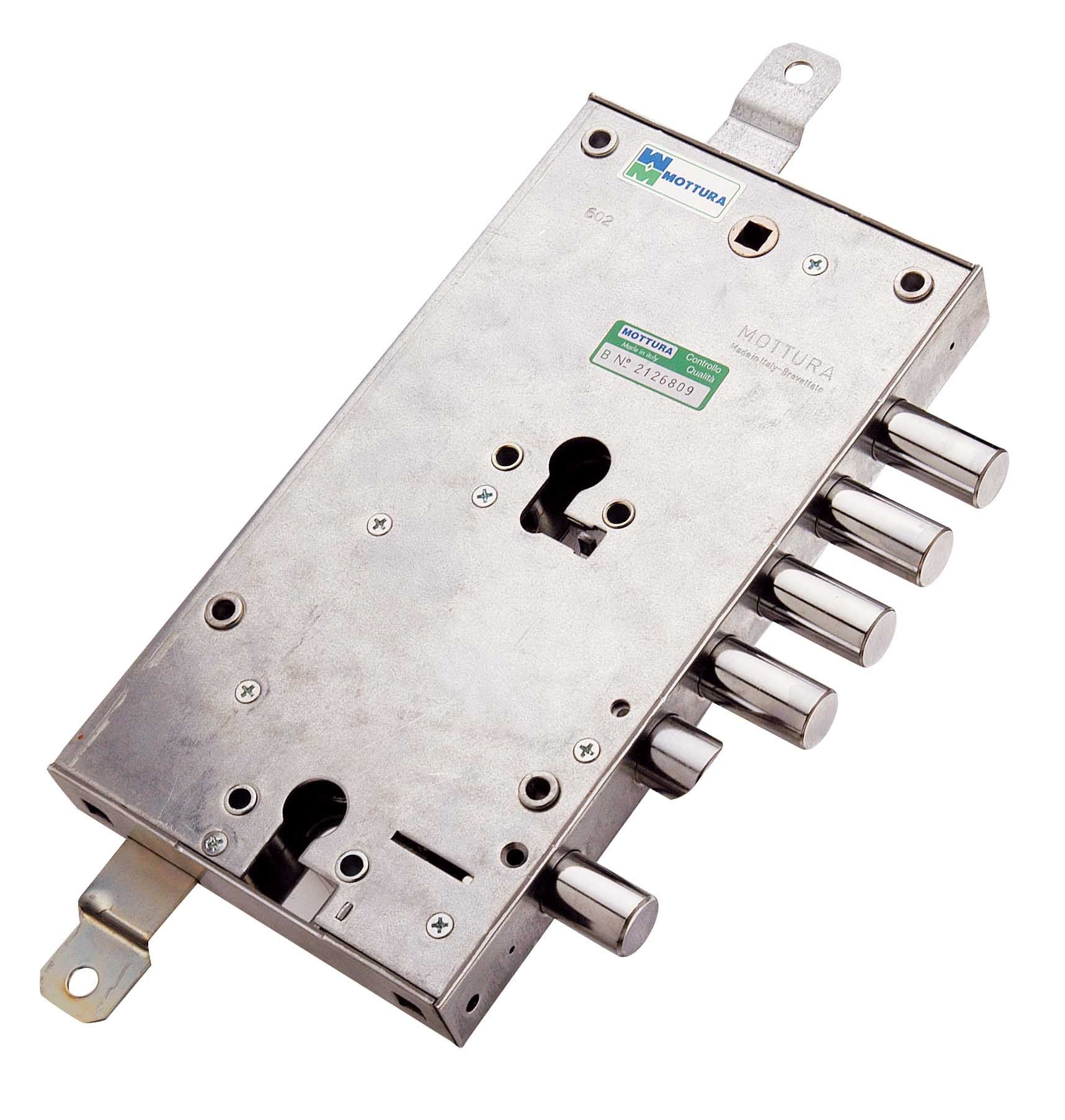 SERRATURAPER BLINDATEMULTIFUNZIONEApplicare Triplicea doppio cilindro2 mandate e scrocco reversibile azionatodalla serr. superioredal quadro manigliae dalla serr. inferioreLa serratura inferioreaziona il catenaccioed é i