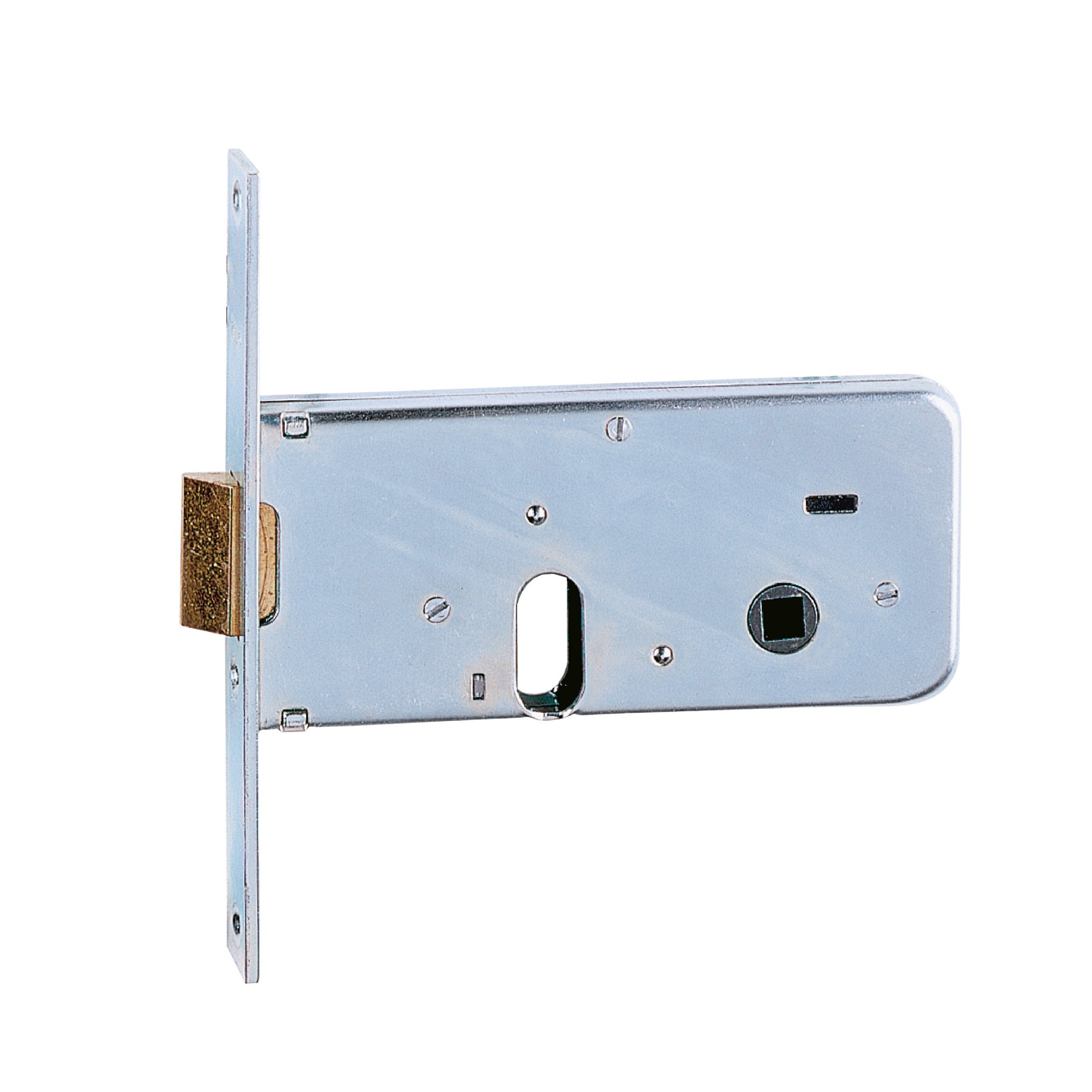 SERRATURA per fasce infilare2 mandate e scrocco incorporatoreversibilecilindro ovale noncompreso - E - 60 - Chiusura - Laterale - Frontale - 16 X 160 - Dim. cassa - 143 X 64 - Int. man. - 47 - Tipologia - Scrocco con mandata