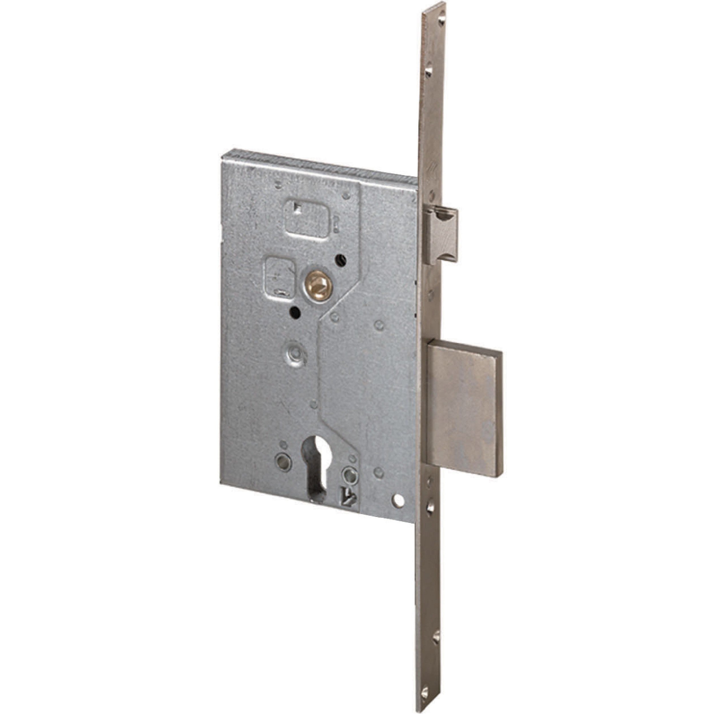 SERRATURA INFILARE4 mandate e scrocco predisposta per protettore Contropiastra in dotazione cilindro sagomatonon compresoConf. scatola cartone - E - 60 - Chiusura - Laterale - Frontale - 25 X 260 - Dim. cassa - 127 X 170 - Int. m