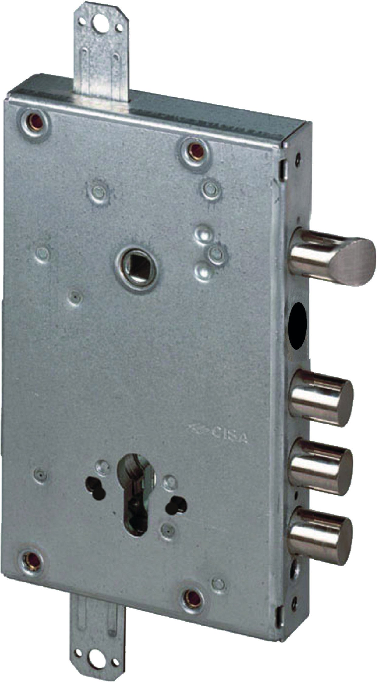 SERRATURA PER PORTE BLINDATEa cilindroApplicare triplicead ingranaggi 2 mandate e scrocco reversibile azionatoda quadro maniglia e cilindroConfezione industriale - E - 64 - Mano - Ambidestra - Sporg. - 13,5 - N° Cat. - 3 caten