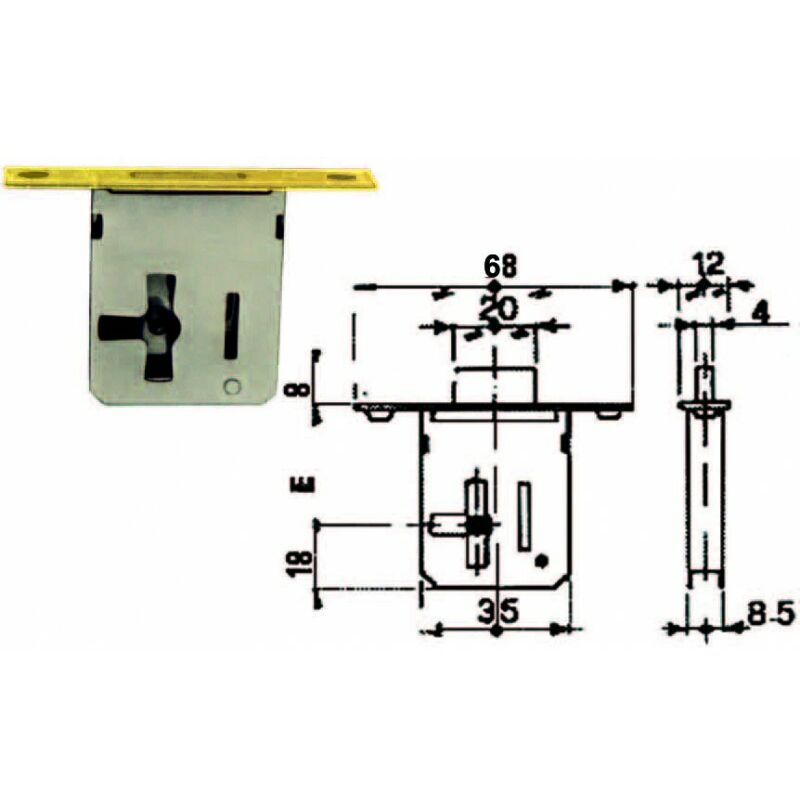 SERRATURA DA INFILARE 1 LEVA BORDO OTTONATO - mm.50 DX corpo e catenaccio in acciaio lucido, 1 mandata, bordo quadro ottonato, con 1 chiave a una leva innesto femmina