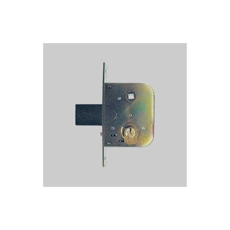 1 Mandata da 10 mm. Scatola e frontale zincati tropicalizzato. Funzionante con cilindro 26 mm sfaccettato. Catenaccio prolungato e scrocco incorporato. Richiamo scrocco con chiave o pomolo interno. Cilindro in dotazione con 3 chiavi. 2 ghiere in nylon per cilindro in dotazione. Serratura ad infilare per cancelli art. 604 iseo e45 - scatola 83x105 mm ISEO Serrature iseo