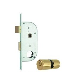 Serratura zincata infilare cancelli Scrocco reversibile Q8 - Catenaccio 2 mandate Misura scatola mm 61x139 Misura frontale mm 20x192 - Entrata mm 32 Cilindro tondo 019-56-0 020-52-0