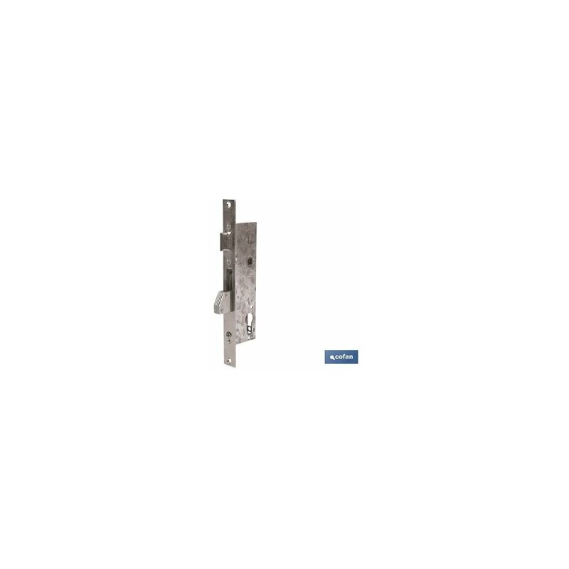 Blocco a leva (corto L) parte anteriore in nichel. Porte in metallo, cassonetto con rivestimento in zinco. Frontale nichelato. Chiusura reversibile. Contiene fissaggio serratura e incontro Caratteristiche tecniche: Misura: D85 E33