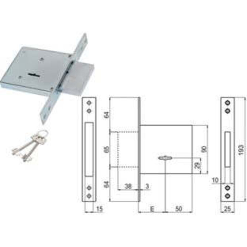 SERRATURA DA INFILARE DOPPIA MAPPA 450/R - mm.50 (00450 R0 50 2C CI) scatola e coperchio in acciaio zincato - piastra frontale e contropiastra nichelate - catenaccio cromato - 4 mandate - in dotazione: contropiastra in acciaio nichelato, viti di montaggio, 2 chiavi cifrate, bocchette copritoppa in ottone