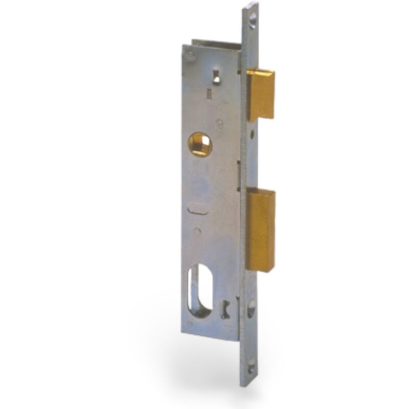Caratteristiche: Da montante di profilati Una mandata con scrocco e quadro maniglia Entrata 15 mm Cilindro ovale non in dotazione
