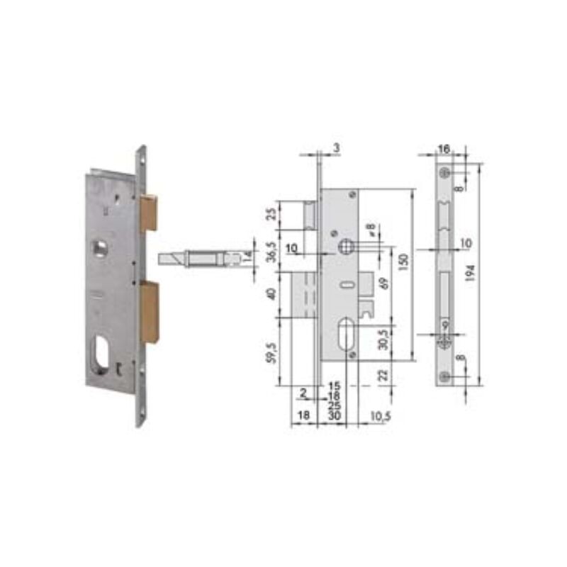 Mm.18 (44225180) scatola e frontale in acciaio con rivestimento in zinco, catenaccio e scrocco in ottone reversibile, 2 mandate, quadro maniglia, cilindro ovale non compreso Categoria merceologica: Serrature, chiusure di sicurezza e accessori - Sicurezza - Serrature per montanti da infilare
