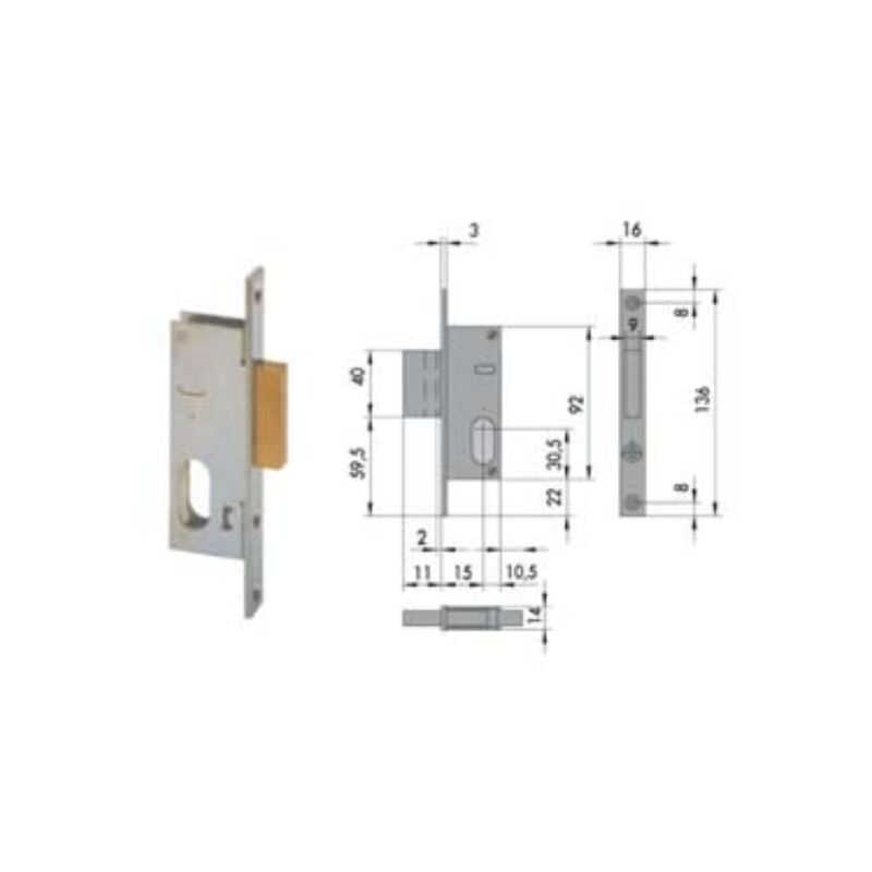 Mm.15 (44240150) scatola e frontale in acciaio con rivestimento in zinco, catenaccio in ottone, 1 mandata, cilindro non compreso Categoria merceologica: Serrature, chiusure di sicurezza e accessori - Sicurezza - Serrature per montanti da infilare