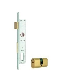 Serratura zincata infilare alluminio montanti Scrocco reversibile Q8 - Catenaccio 1 mandata Misura scatola mm 26x150 Misura frontale mm 16x200 - Entrata mm 14 Cilindro ovale 018.56.0