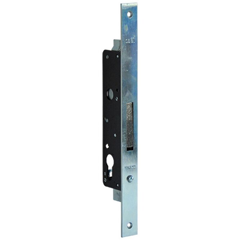 Una mandata, chiusura triplice. frontale zincato. senza cilindro. completa di due raccordi filettati m8.e 35 - senza scrocco