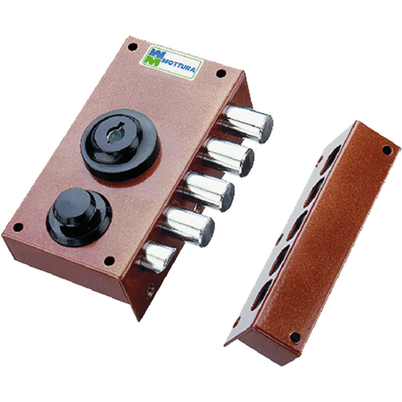 Con mezzo giro. Pompa-cilindro ø 30 mm con lunghezza esterna mm 50. Apertura interna con chiave, pompa singola. Finitura: verniciata bronzo.