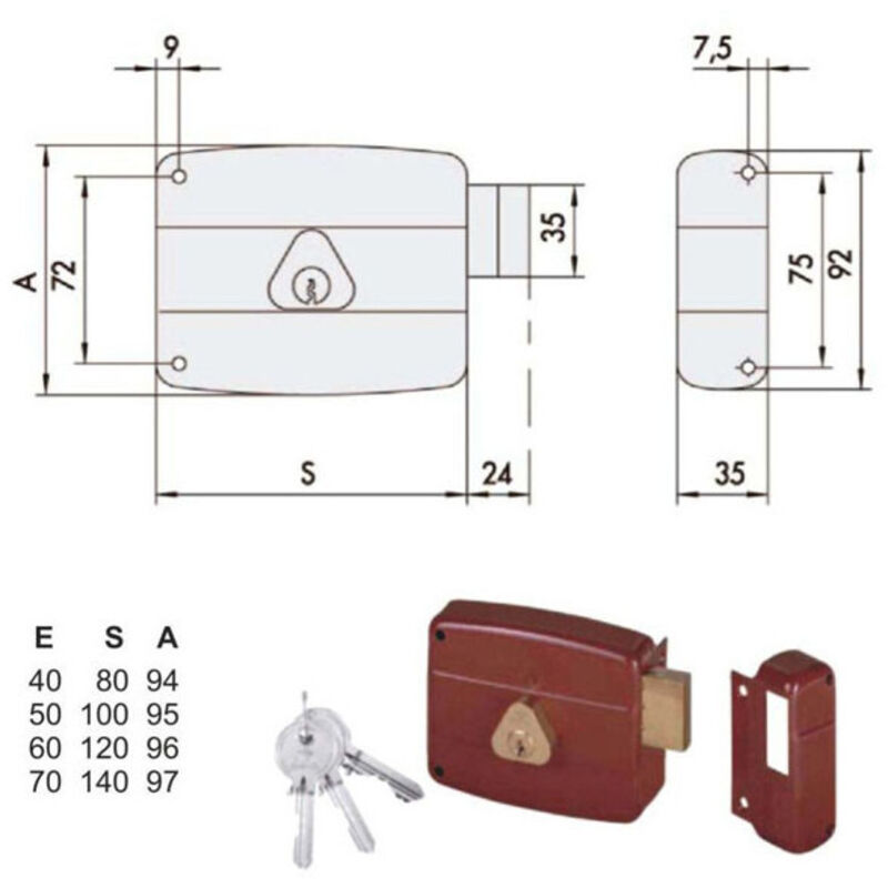 Serratura verniciata rossa applicare legno Cilindro interno Solo catenaccio Bocchetta - Viti fissagg