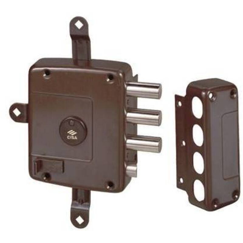 A doppia mappa. Scrocco. Chiusura con catenaccio a 3 pistoni e 4 mandate. Tirante sul dorso. Canotto guida chiave esterno. Scato