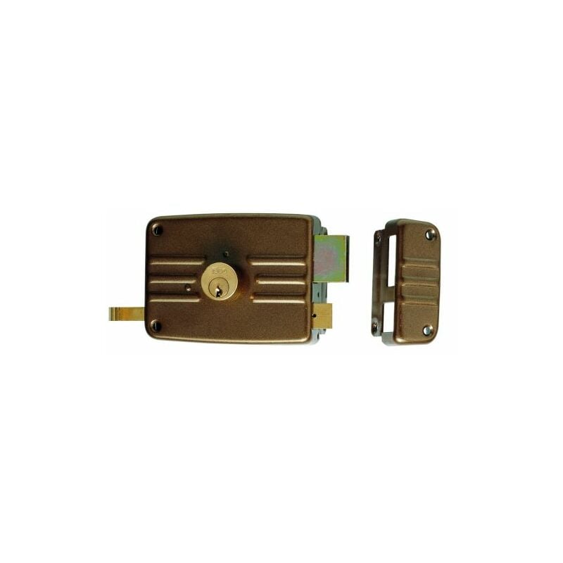 Serratura da applicare. Cilindro interno fisso, scrocco separato, 3 chiavi.