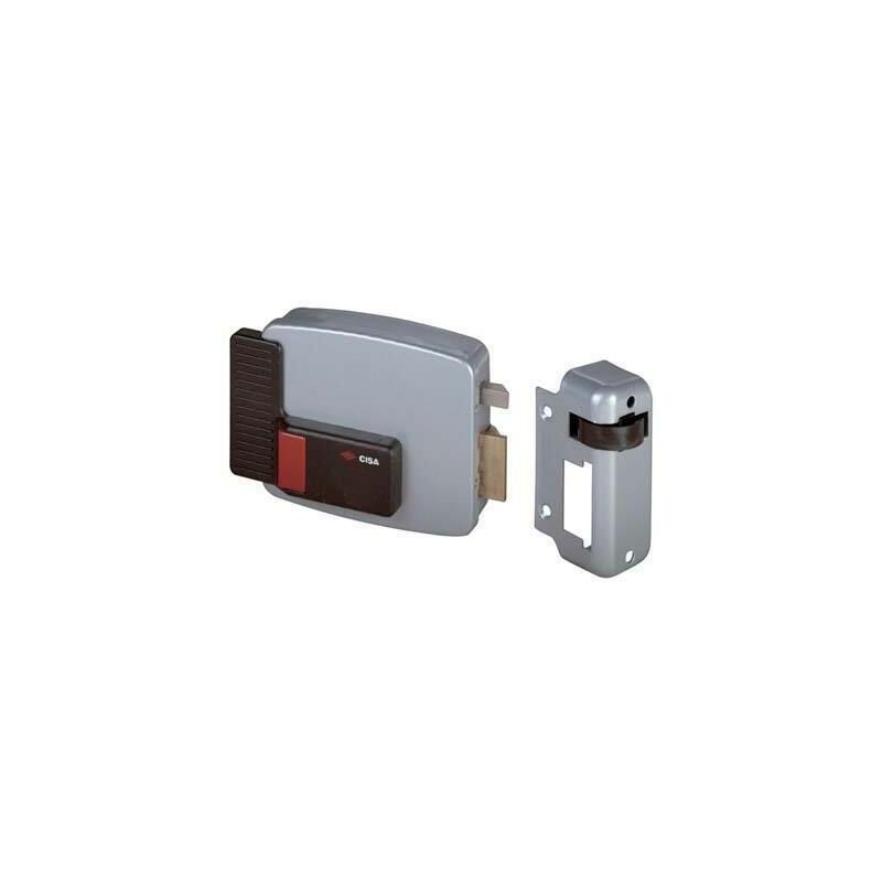 Con cilindro esterno staccato e pulsante. Scrocco autobloccante elettrificato 12V. Scatola Mm. 128x106. Bocchetta Mm. 40x100. In