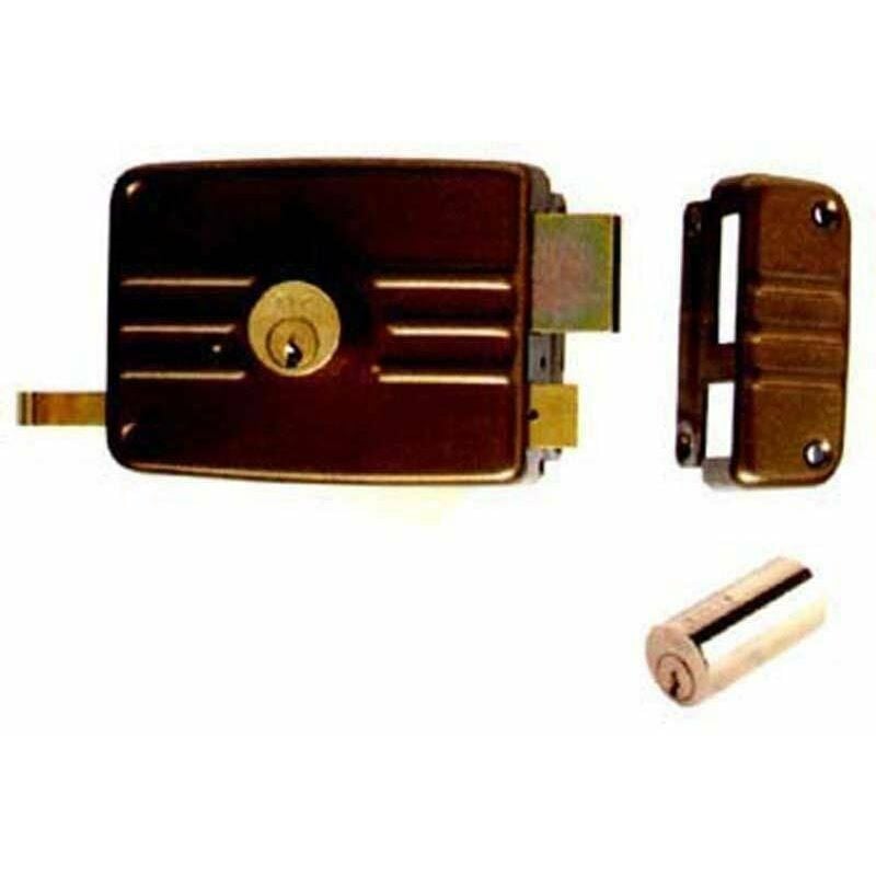 Descrizione Serratura da applicare per serramenti in legno. Con cilindro interno ed esterno fisso mm 26x50. Scrocco separato con tirante interno e richiamo con chiave esterno. 2 mandate. Mano sinistra. Dotazione: bocchetta, viti fissaggio, 3 chiavi. Dimensione: 50 mm. N.B. Per qualsiasi dubbio o chiarimento in merito alla serratura: Es. Mandate, chiusura e apertura, verso/direzione, misure, ecc. NON ESITATE A CONTATTARCI.