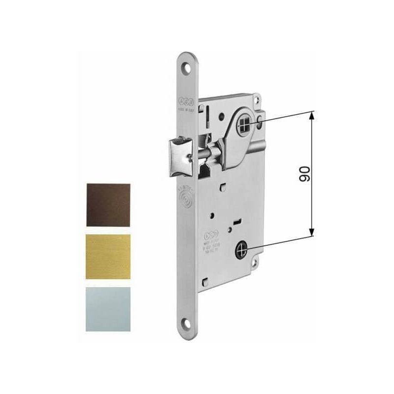 Serratura Infilare Legno Interasse Mm 90 Frontalebordo Tondo Ferro Verniciato Mm 22X196 Scrocco Reversibile Quadro Mm 8 Quadro Bagno Mm 6 Altezza Scatola 132 Incontro Non Incluso
