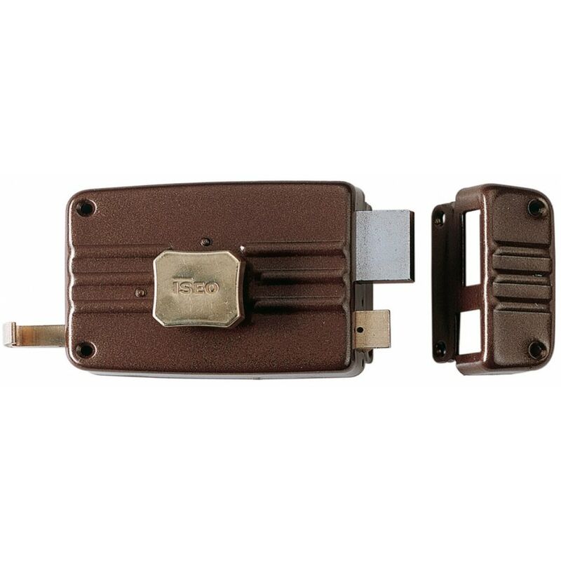 Serratura da applicare. Pomolo interno, cilindro esterno staccato, scrocco separato, 3 chiavi. Art. 401